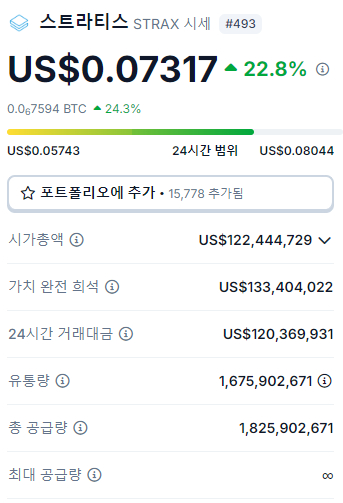 12월 21일 기준으로 STRAX의 가격은 약 0.07달러를 기록했는데, 이는 한 달 전과 비교해 약 33% 상승한 수치입니다.