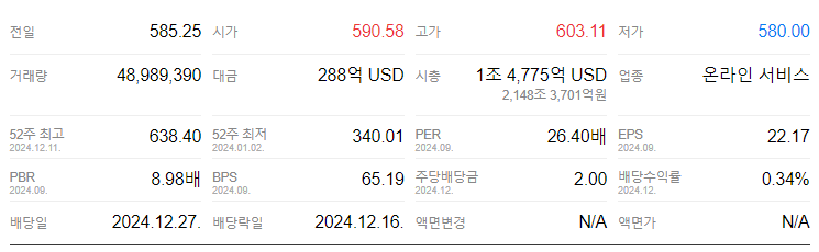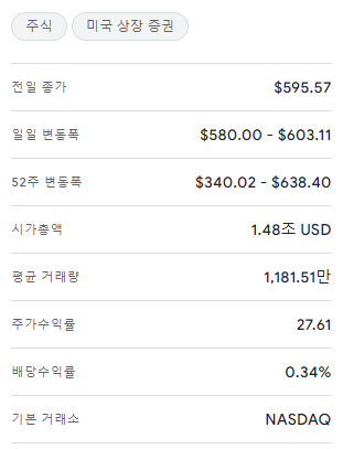- 52주 최고가: 638.40달러