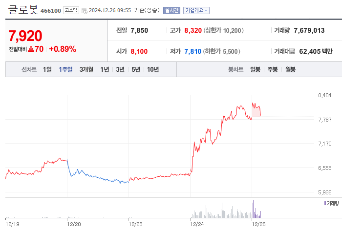 클로봇의 최근 주가는 강세를 보이고 있습니다.
