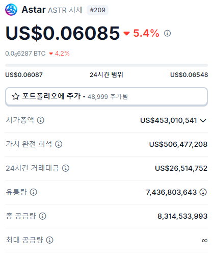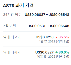 2024년 12월 26일기준, 아스타 코인의 가격은 약 0.06달러입니다.