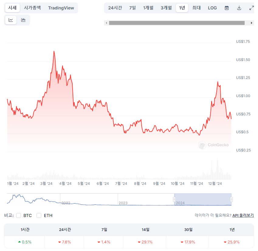 2024년 12월 25일 기준, 플로우의 가격은 약 0.7달러입니다.