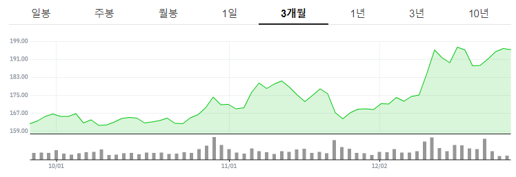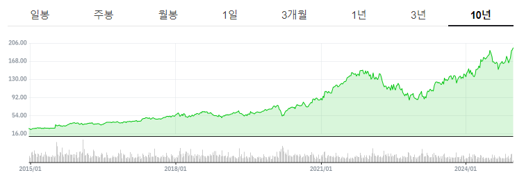 52주 최고가는 약 201달러, 최저가는 약 130달러로, 현재 주가는 꾸준한 상승세를 보이고있습니다.