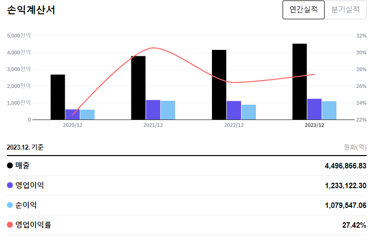 2024년 3분기 기준 매출액은 882억7000만 달러, 주당순이익(EPS)은 2.12달러를 기록했습니다.