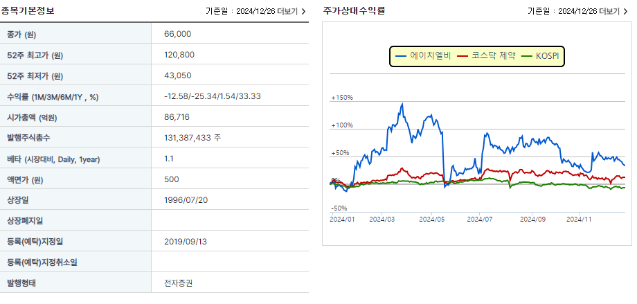에이치엘비(HLB) 주가 전망을 살펴보기 전에 최근 주가 동향을 먼저 볼까요?