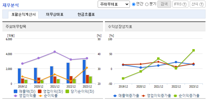 2024년 3분기 기준 매출액은 1051억원으로, 전년 동기 대비 23.9% 증가했습니다.