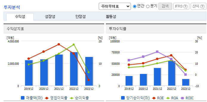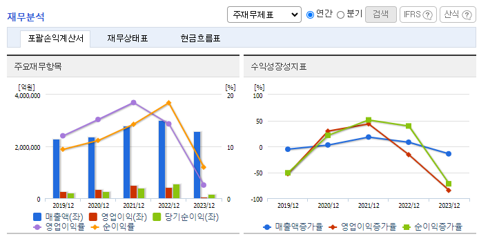 - 반도체 시장 침체: 메모리 반도체 가격 하락으로 실적이 악화되었습니다.