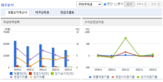 2023년 기준 매출액은 3조 6,740억 원이며, 4,782명의 직원이 근무하고 있습니다.