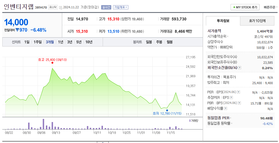 현재 인벤티지랩의 시가총액은 약 1500억원 수준으로, 많은 전문가들이 이를 매력적인 투자 기회로 평가하고 있습니다.