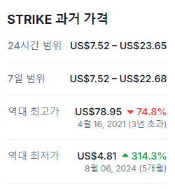 2025년 1월 9일 기준으로 스트라이크의 가격은 약 18달러를 기록했습니다.