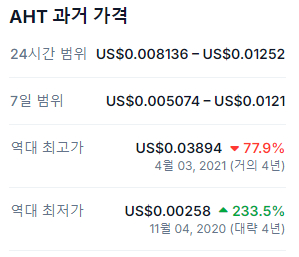 단기적으로 아하토큰의 시세는 $0.01까지 상승할 것으로 예상됩니다.