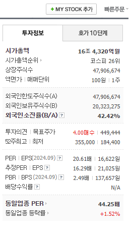 52주 최고가 35,5000원, 최저가 184,400원을 오가며 투자자들의 마음을 졸이게 했습니다.