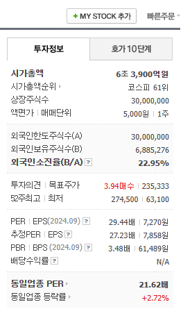 - 2024년 배당금: 주당 258원 (전년 대비 감소)