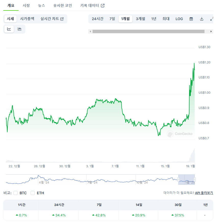 시가총액은 약 $1.97B로, 암호화폐 시장에서 상위권을 차지하고 있습니다.