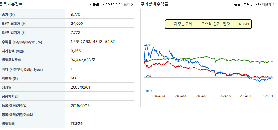 2025년 1월 20일 기준, 제주반도체의 주가는 약 11,510원을 기록하며 전일 대비 17.8% 급등했습니다.