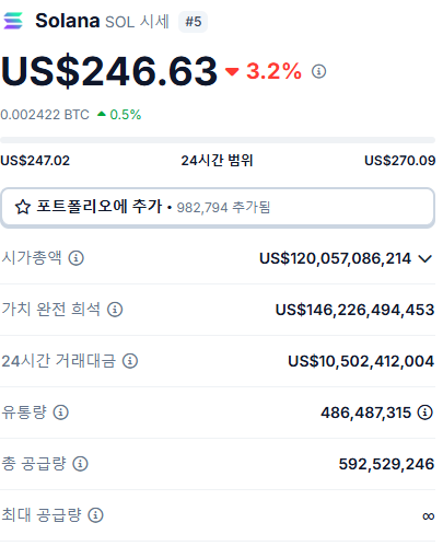 솔라나(SOL) 최신 시세 동향