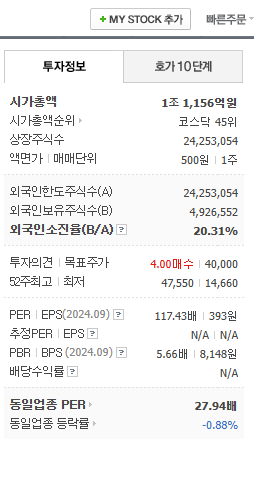 최근 주가는 꾸준한 상승세를 보이고 있으며 오늘 장중 52주 최고가인 47,550원을 달성했습니다.