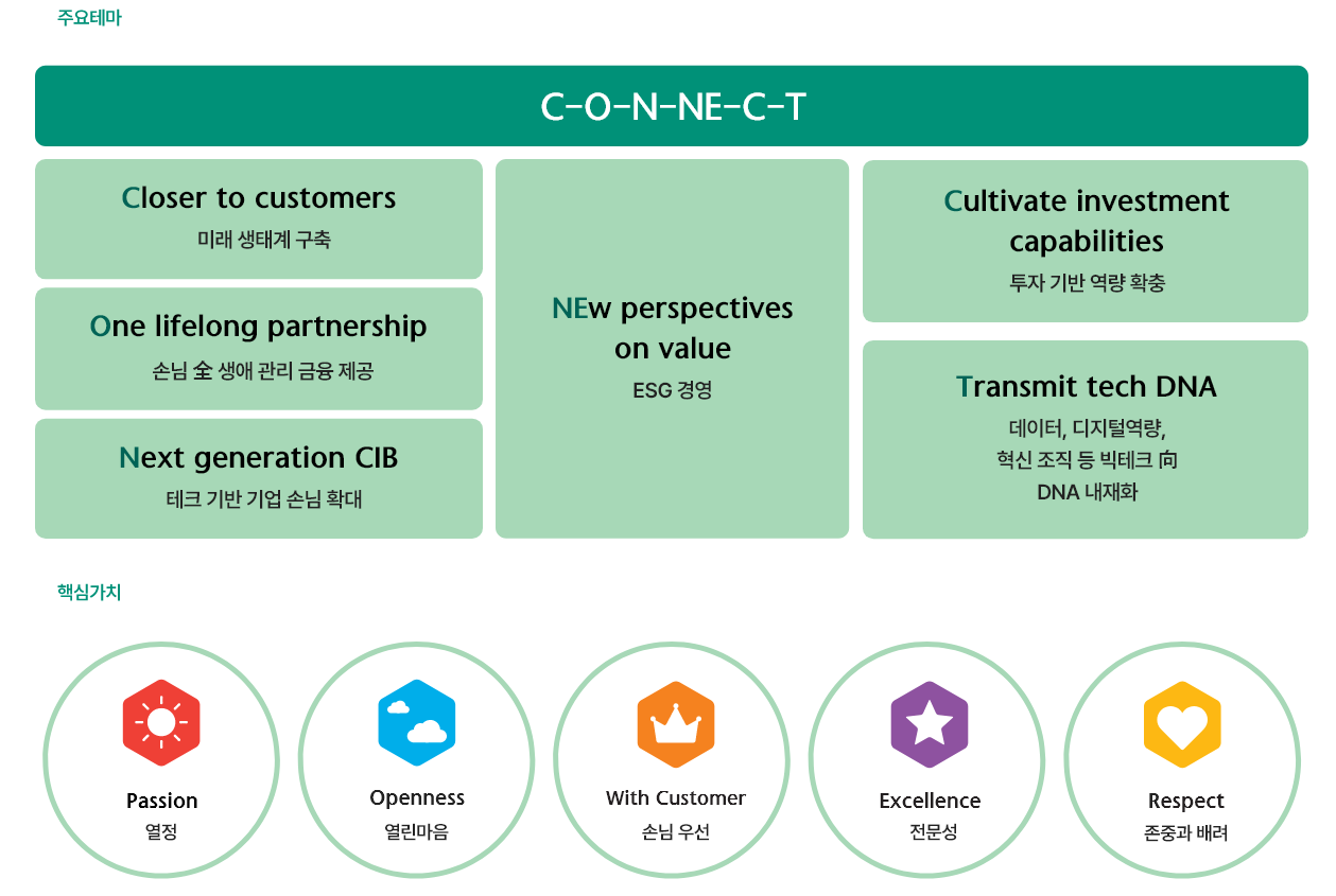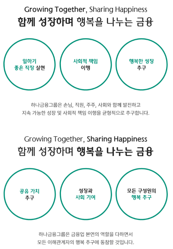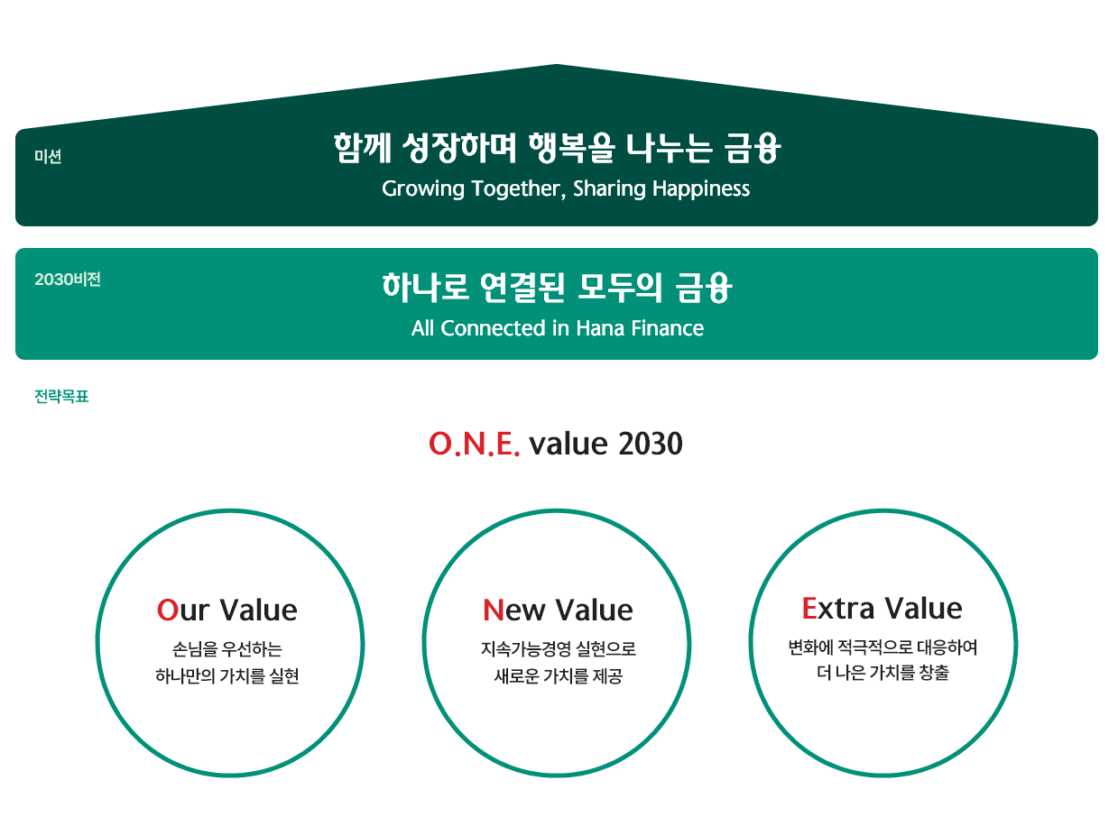 "하나로 연결된 모두의 금융"이라는 비전 아래 디지털 혁신과 고객 중심 서비스를 추구하고 있습니다.