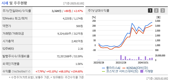 - AI 시장 성장: 글로벌 AI 시장의 급속한 성장으로 폴라리스AI의 사업 기회가 확대될 것으로 예상됩니다.