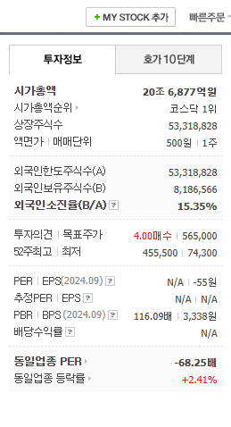 - 높은 밸류에이션: 현재 주가가 실적에 비해 높게 평가되고 있다는 우려가 있습니다.