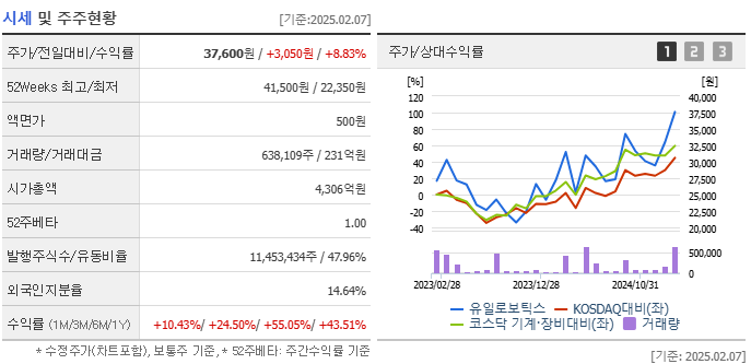 - 로봇 산업 성장: 글로벌 로봇 시장의 확대로 유일로보틱스의 성장 가능성이 주목받고 있습니다.