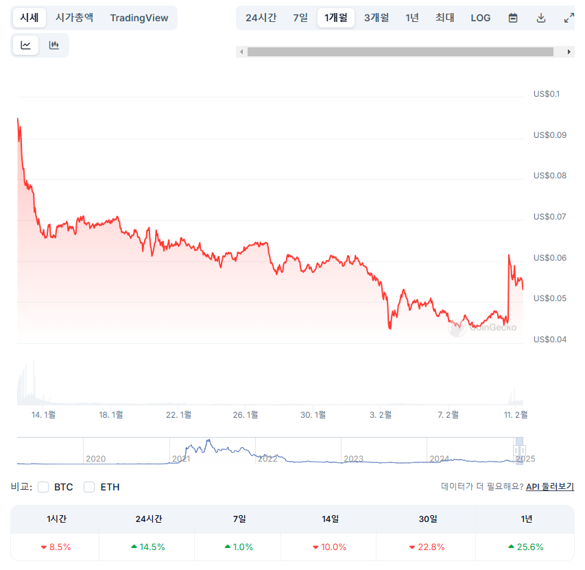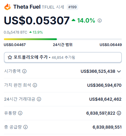 2025년 2월 11일 현재, TFUEL의 시세는 약 0.05 달러입니다.