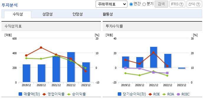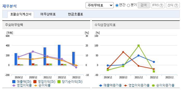 - 2022년 매출 감소 이후 실적 회복 중이나 지속적인 개선 필요