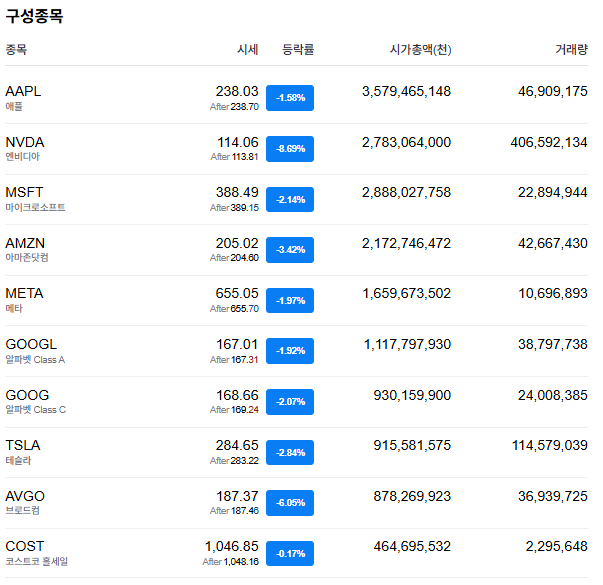- 기술주 강세: 엔비디아가 4.07% 상승하는 등 반도체 업체들을 중심으로 기술주들이 강세를 보였습니다.
