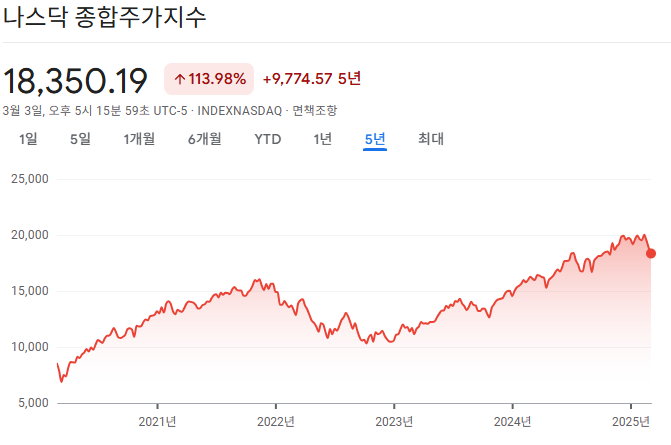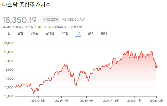 그러나 2025년 3월 들어 나스닥 지수는 급격한 하락세를 보이고 있습니다: