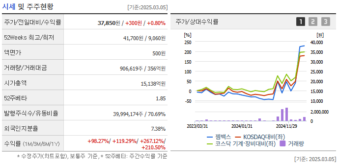 - 바이오 업종 전반의 변동성: 바이오 및 제약 업계 전반의 높은 변동성이 젬백스 주가에도 영향을 미치고 있습니다.