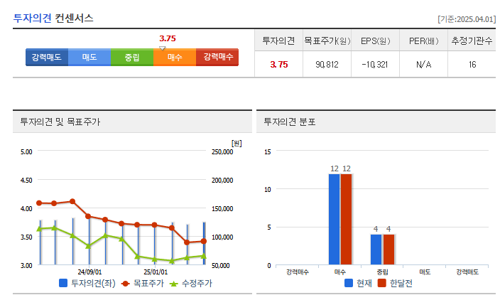 - 2025년 1분기 실적 전망: 영업손실이 전 분기 대비 약 39.47% 감소한 1,417억 원으로 예상되며, 적자 폭 축소 기대감이 반영됨.