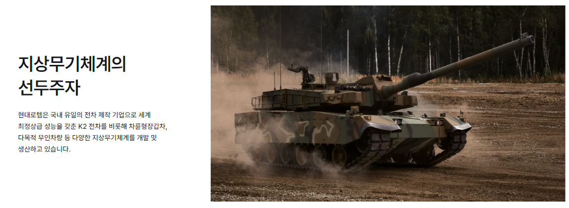 K2 전차, 장갑차 등 방산 장비와 KTX, 전동차 등 철도 차량을 생산합니다.
