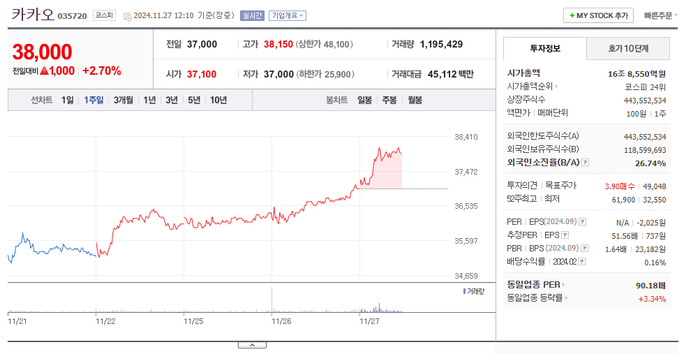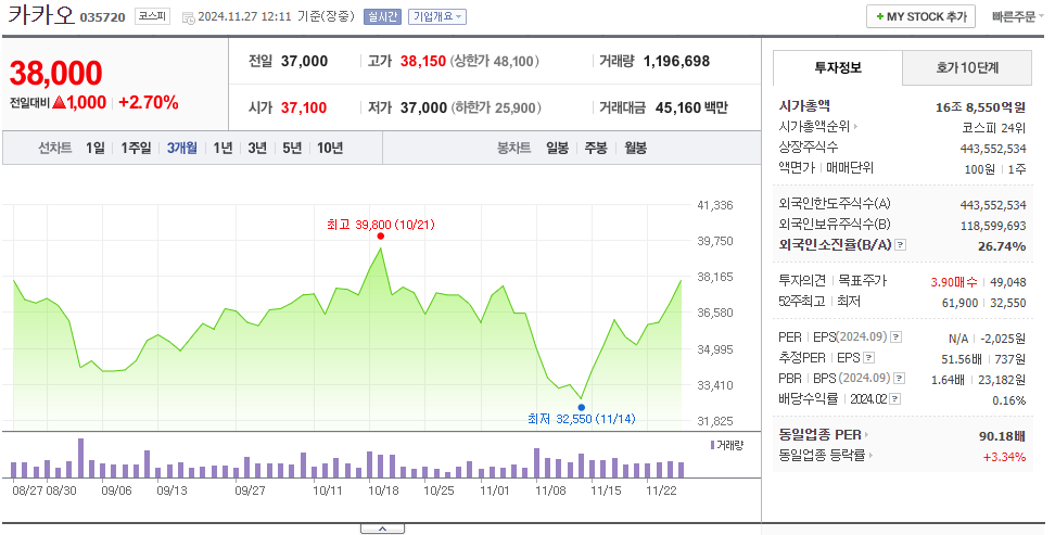 현재 많은 투자자들이 카카오의 실적 개선 가능성과 신규 사업의 성장성에 주목하고 있습니다.