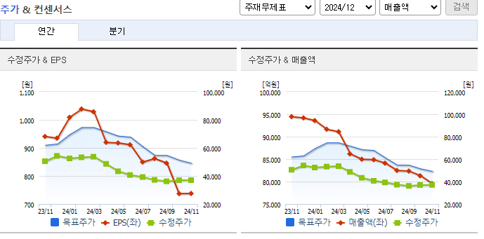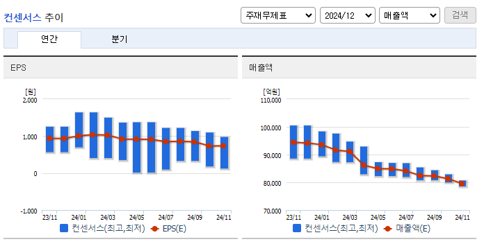 실적 부진, 계열사 리스크, 성장 모멘텀 부재 등이 주가 하락 요인으로 지목됩니다.