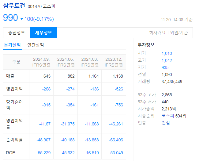 삼부토건의 주가 전망을 논할 때 빼놓을 수 없는 것이 바로 회사의 재무 상황입니다.