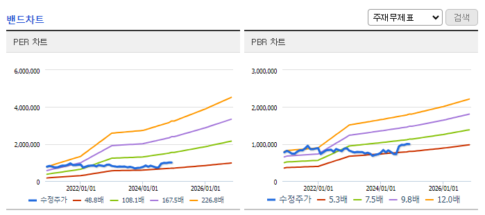 11월 중순 이후 주가는 900,000원대에서 변동성을 보이며, 52주 최고가는 1,113,000원, 최저가는 698,000원입니다.