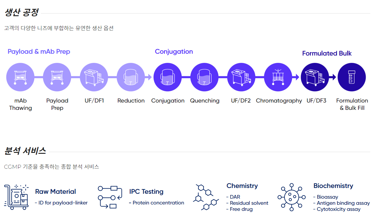 세계 최대 규모의 생산 시설을 갖추고 있으며, 초기 개발부터 상업 생산까지 end-to-end 서비스를 제공합니다.