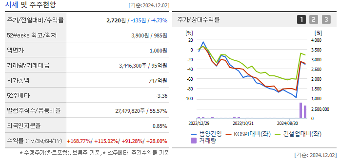 2024년 12월 초 범양건영의 주가는 2,640원입니다.