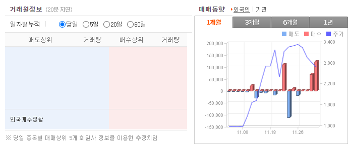 11월 한달간 주가가 100% 이상 큰 폭으로 상승했습니다.