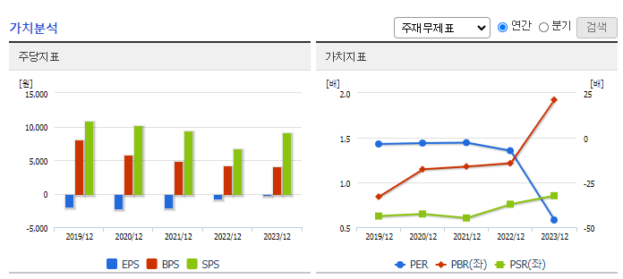 PER은 -98.694로 업종 평균보다 낮습니다.