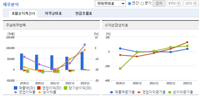 2024년 1분기 기준으로 약 2조 1,587억 원의 결손금을 기록하고 있어, 당장은 배당 재개가 어려운 상황입니다.