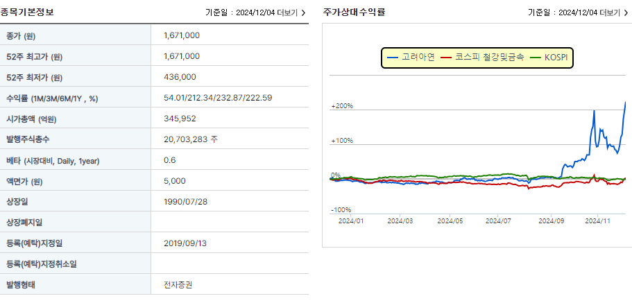 최근 고려아연을 둘러싼 경영권 분쟁이 치열해지면서 주가가 급등하는 모습을 보이고 있는데요,