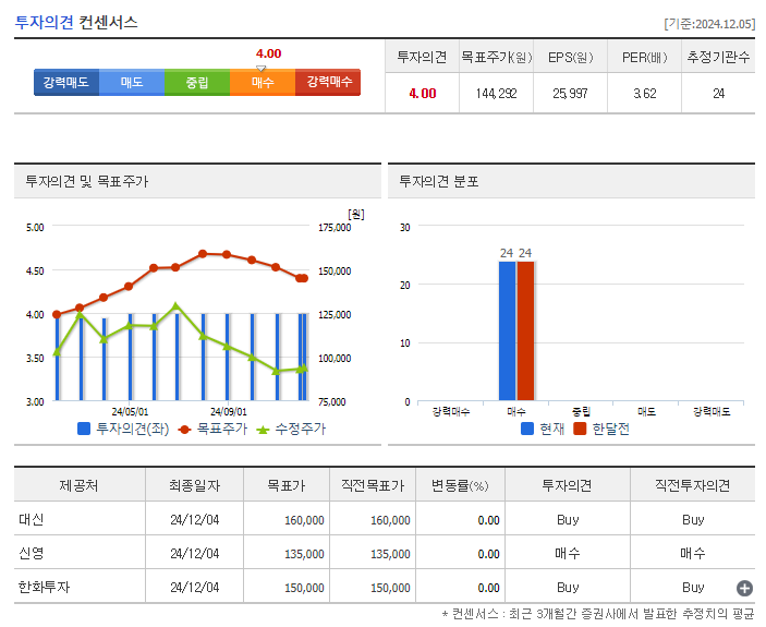 주가는 최근 등락을 거듭하고 있으며, 1년 평균 목표 주가는 147,860.77원으로 현재 주가보다 높게 설정되어 있습니다.