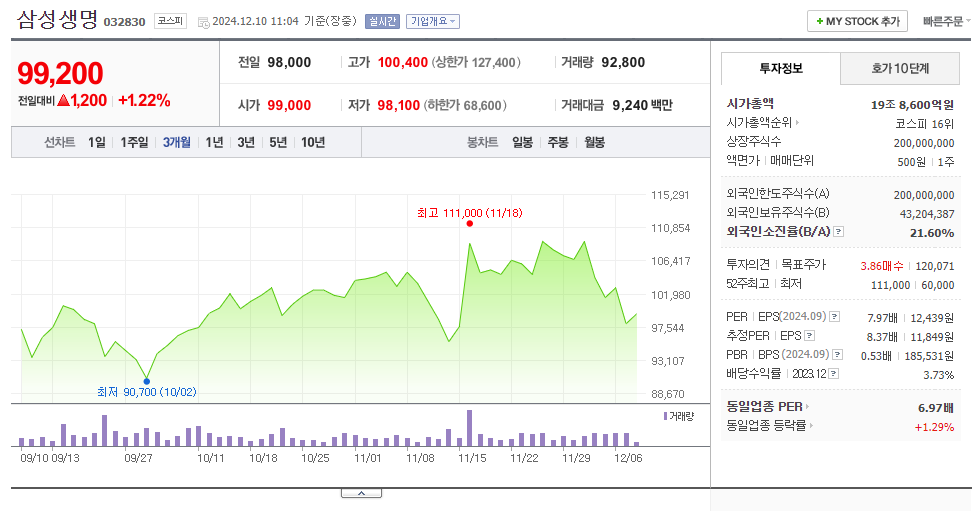 삼성생명의 현재 주가는 99,300원입니다.