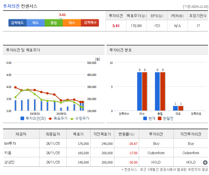 - 목표주가 하향: 증권사들이 목표주가를 대폭 낮추고 있으며, '매도' 의견이 늘어나고 있습니다.