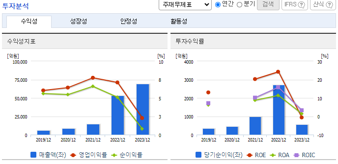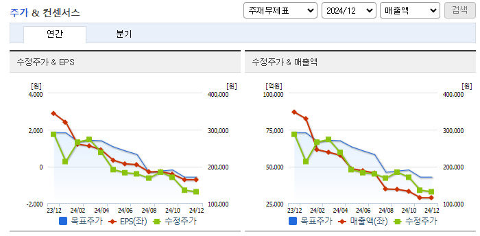 - 실적 악화: 2024년 영업이익 추정치가 전년 대비 크게 감소했으며, 2분기에는 적자 전환이 예상됩니다.