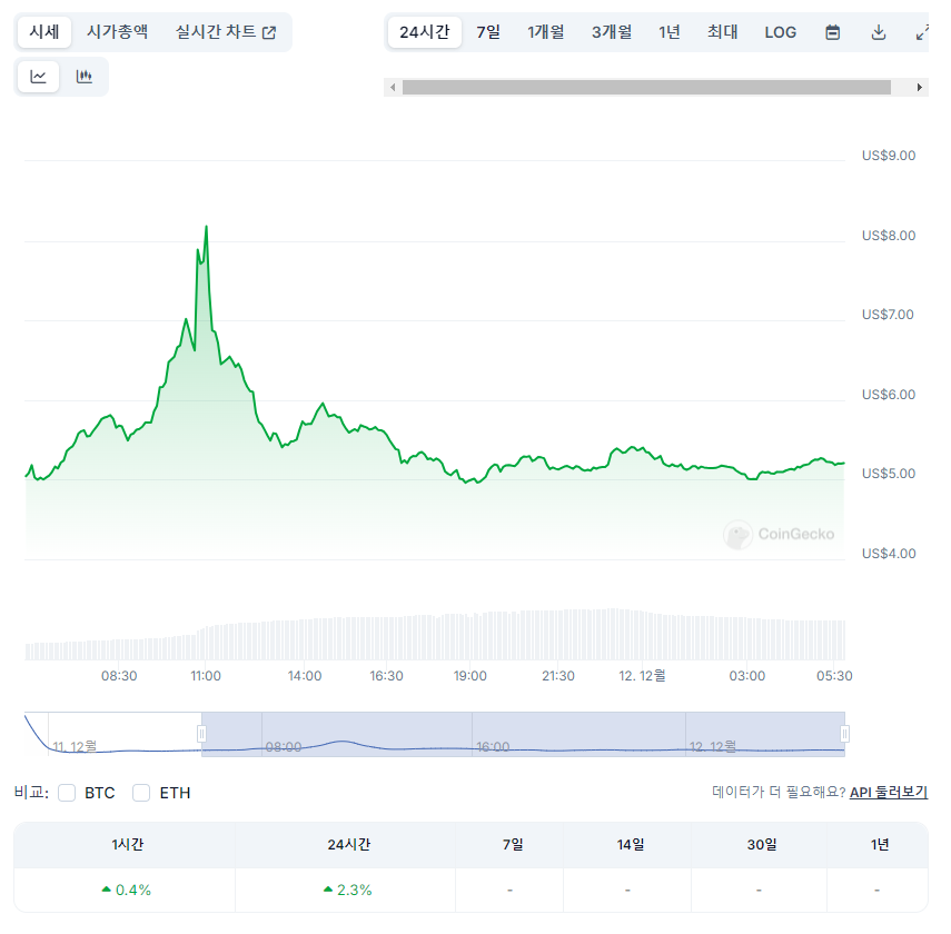 현재는 반등세를 보이며 약 5달러 대에서 안정세를 유지하고 있습니다.