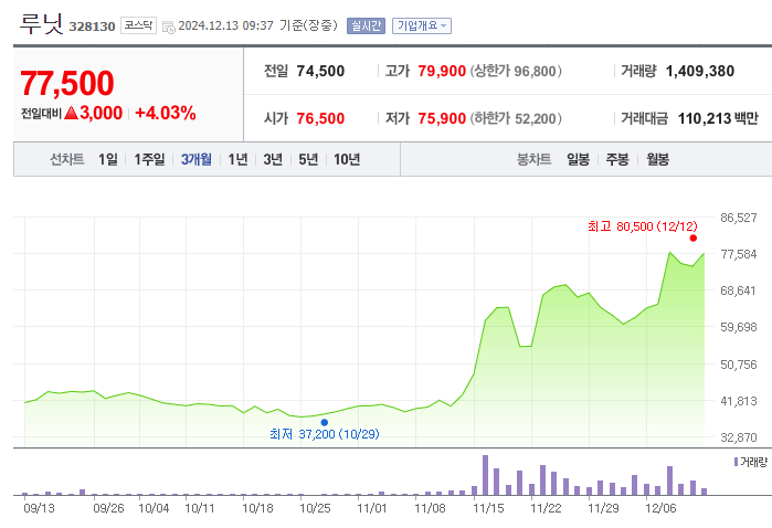 특히 3분기 매출이 전년 대비 413% 증가하며 성장 가능성을 보여줬고, 이에 따라 주가가 반등하는 모습을 보였습니다.