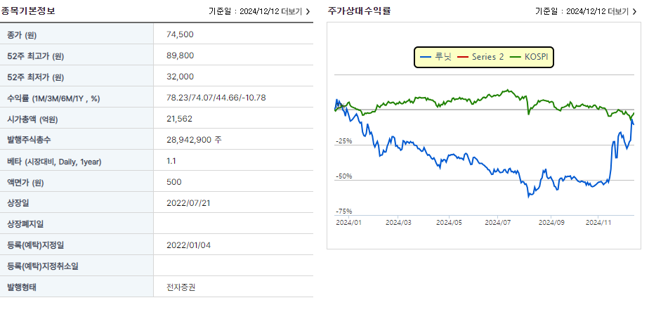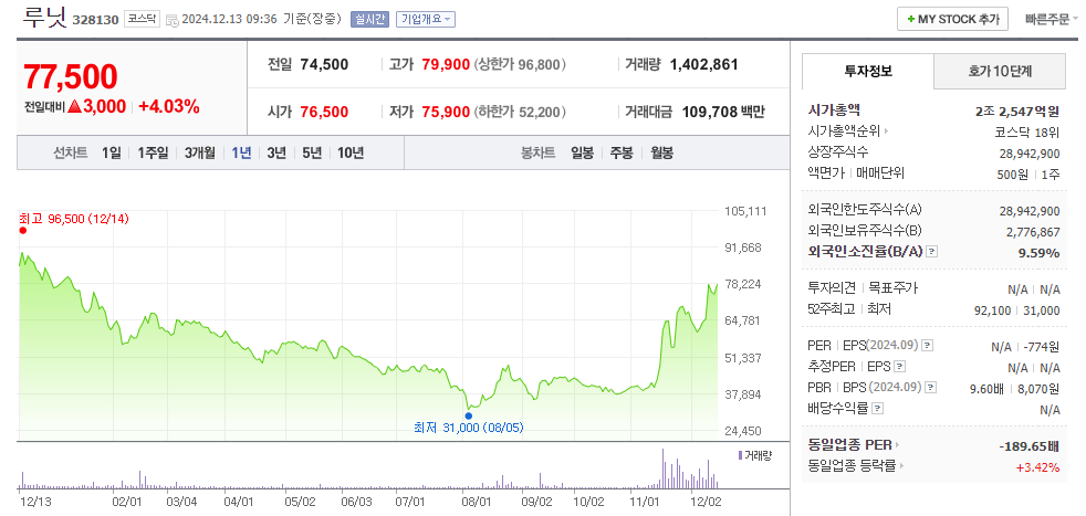 2024년 12월 13일 기준 현재의 루닛의 주가는 는 약 78,800원입니다.