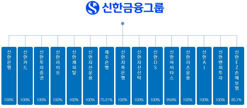 주요 계열사로 신한은행, 신한카드, 신한투자증권, 신한라이프 등이 있습니다.