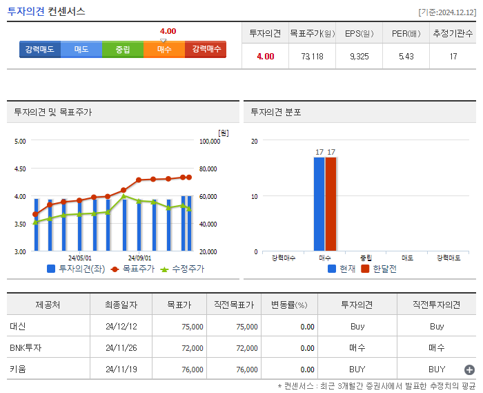 현재 증권사들의 평균 목표주가는 77,000원 정도에요. 이는 현재 주가 대비 상당한 상승 여력이 있다는 뜻이죠.